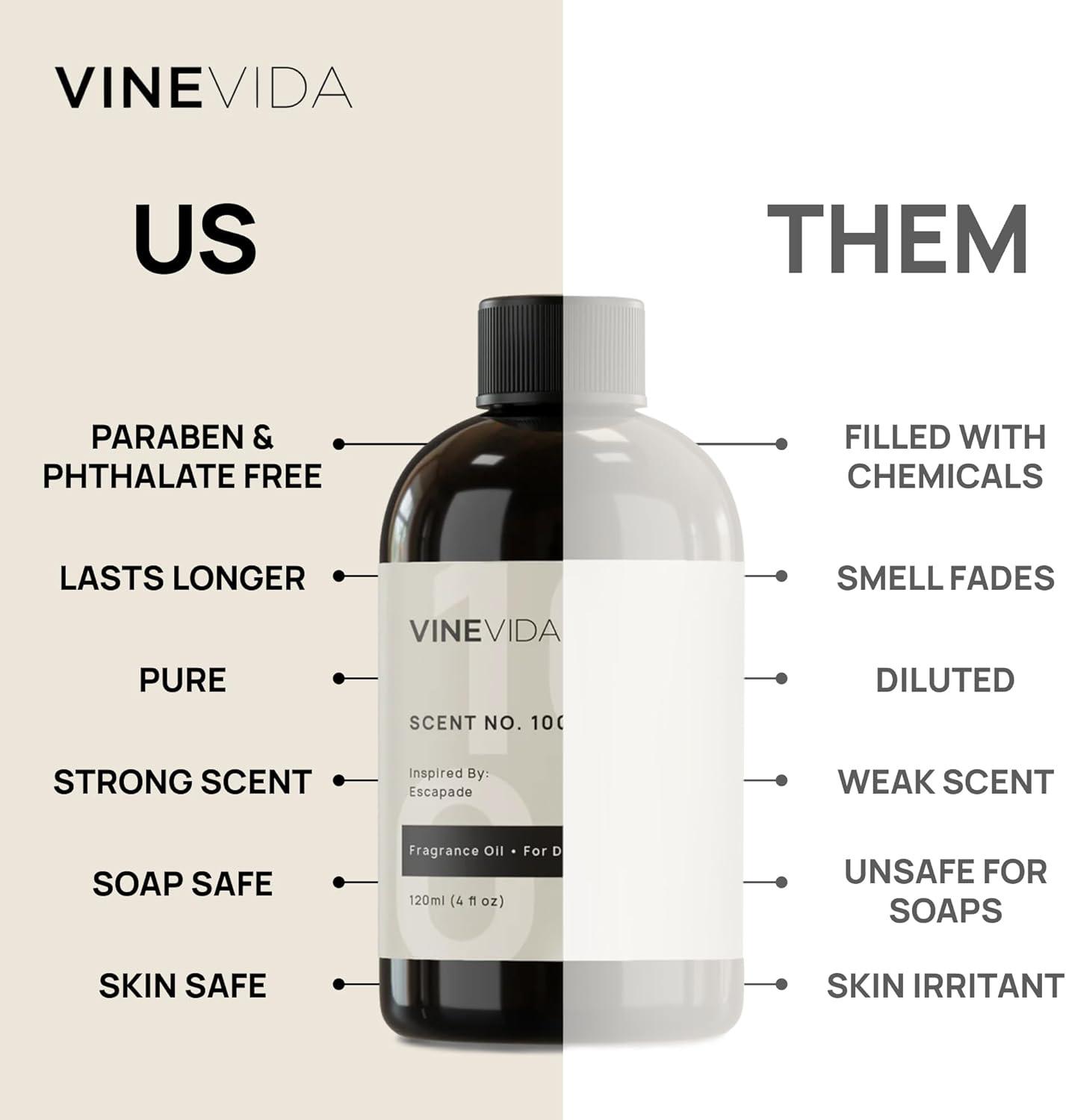 NATURAL – Our scents and fragrances are skin-safe (when diluted) using pure, natural, and raw ingredients. All VINEVIDA products are vegan, free of phthalates, parabens, and other potentially dangerous chemicals.